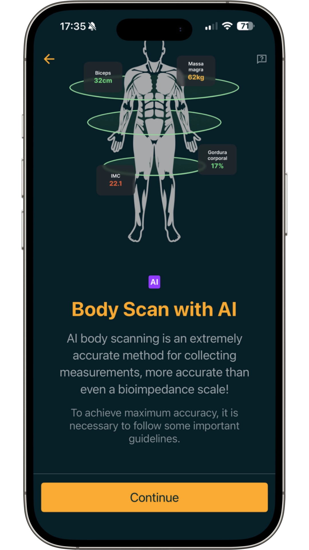 AI Body Scan and advanced metrics to track changes over time, compare results, and stay motivated.